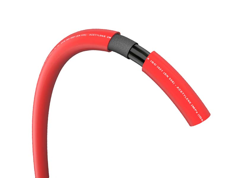 Wąż ACETYLENE przeznaczony jest przede wszystkim do transportu sprężonych gazów spawalniczych, zwłaszcza acetylenu, ale można nim również transportować tlen. Ma gładkie ścianki wewnątrz i na zewnątrz. Wielowarstwowy, posiada wzmacniającą siatkę wykonaną z poliestru, która zwiększa jego wytrzymałość na rozciąganie i odporność na pękanie. Wąż wykorzystywany do zasilania palników acetylenem z butli przy metodzie spawania gazowego. Wąż dostępny w wersji wykonanej z gumy.