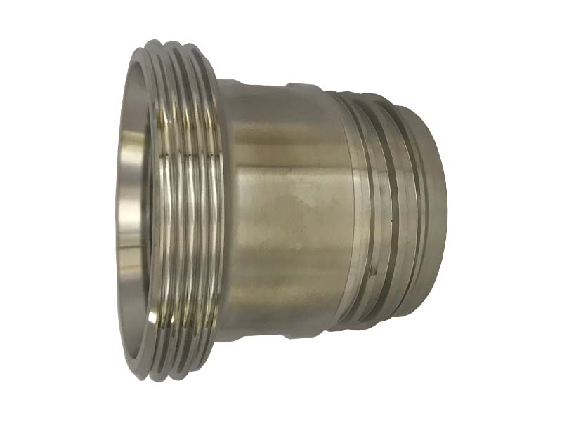 Adapter ze złączem mleczarskim, typ SMS 1145 męskim i z gwintem zewnętrznym do paletopojemników typu IBC, wykonane ze Stali Szlachetnej bez uszczelek.