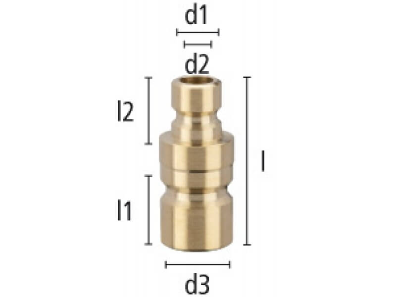 Adapter z wtykami szybkozłączki, wykonany z mosiądzu (MS 58).