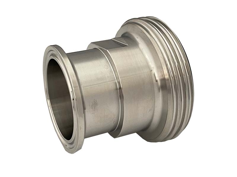 Adapter ze złączami mleczarskimi, typ SMS 1145 męskim i typ TRICLAMP, wykonany ze Stali Szlachetnej bez uszczelek.