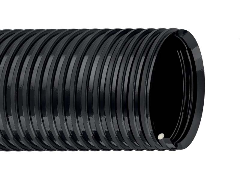 | Parametry użytkowe | Falisty na zewnątrz i gładki wewnątrz, odporny na ścieranie, starzenie, uderzenia, warunki atmosferyczne i ozon również w warunkach zimowych, czarny. |