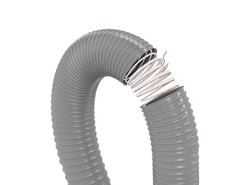 Wąż ESPIROAIR ANTIESTATICO został zaprojektowany z myślą o efektywnym zasysaniu powietrza i gazów, oraz wentylacji. Wąż sprawdzi się przy odsysaniu dymu, pyłu, nasion czy włókien tekstylnych. Zastosowanie wewnętrznej powierzchni o gładkiej strukturze umożliwia płynny przepływ medium, eliminując problem odkładania się złogów. Natomiast falista struktura zewnętrzna ułatwia obsługę węża. Materiał, z którego wykonano ten wąż, gwarantuje niepalność. Dzięki temu, nadaje się do konstruowania przemysłowych instalacji odciągowych. Wąż posiada spirale, która umożliwia mu funkcjonowanie pod podciśnieniem, która wyposażona jest w miedziany drut odprowadzający ładunki elektryczne, dzięki czemu może pracować w strefach ATEX.