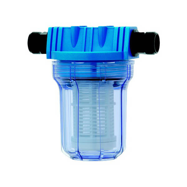 | Materiał | Przezroczysta czasza filtru: tworzywo SAN; wkład: tworzywo PP. Wkładki z gwintem wewnętrznym G 1“: mosiądz. Nyple gwintowane: tworzywo PP czarne. |