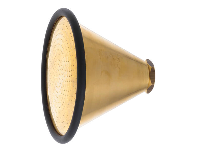 Głowica nawadniająca GEKA z gwintem wewnętrznym lub zewnętrznym, wykonana z mosiądzu z osłoną sitka z EPDM.