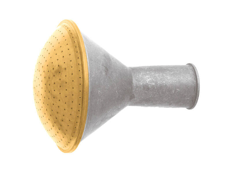 | Głowica i odpowiednia średnica otworów w siatce zapewniają optymalne formowanie kształtu strumienia i wielkość kropel, przypominający naturalne zjawisko lekkiego deszczu. Główka zapobiega powstawaniu zjawiska dużych kropli, a wypukłe sitko zapewnia równomierne formowania szerokiego strumienia. | Głowica współpracuje z pistoletem do nawadniania GEKA® Plus watering showers, dostosowanym do wciskanych dużych końcówek nawadniających, który w wersji metalowej dostępny jest tutaj >>> , a w wersji z tworzywa sztucznego tutaj >>> | Końcówka współpracuje również z lancą nawadniającą GEKA® Plus outdoor watering device dostosowaną do nakładania wciskanych dużych końcówek nawadniających, który dostępny jest tutaj >>> |