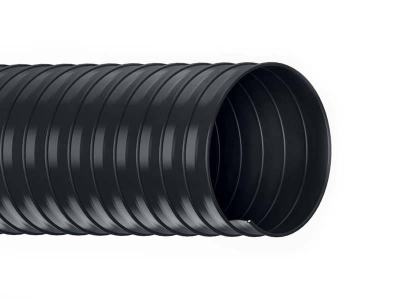Wąż wentylacyjny VULCANO PVC AL wykonany z PVC-P, wzmocniony spiralą stalową. Lekko karbowany na powierzchni wewnętrznej i zewnętrznej. Materiał węża jest trudnopalny, zgodnie z normą UL 94 V0. Posiada stałą grubość ściany wynoszącą 0,6 mm. Dzięki wysokim właściwościom mechanicznym wąż znajduje szerokie zastosowanie, szczególnie w aplikacjach wymagających dynamicznych właściwości, takich jak elastyczność, lekkość, łatwość obsługi i doskonała zdolność do zginania. Oferuje dobrą odporność na większość substancji chemicznych, ozon, promieniowanie UV, warunki atmosferyczne i starzenie. Może być przewodzący (R<10² Ohm/m) po uziemieniu spirali.