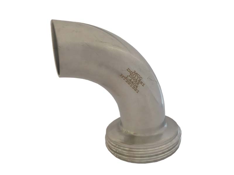 Kolano ze złączem mleczarskim, skręcane, typ DIN 11851 męskie do wspawania, wykonane ze Stali Szlachetnej bez uszczelki.