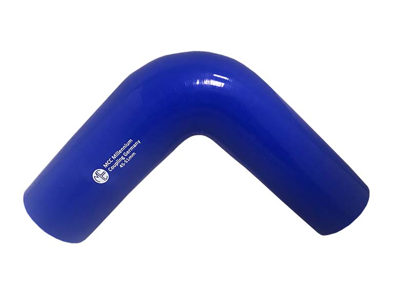 Silikonowy łącznik kątowy 90° redukcyjny, kolano przeznaczone do konstrukcji instalacji chłodniczych w silnikach spalinowych. Element stosowany do transportu wody chłodniczej. Może pracować w otoczeniu wysokich temperatur występujących w układach chłodzenia, w ograniczonych przestrzeniach silników samochodowych, samogasnący.