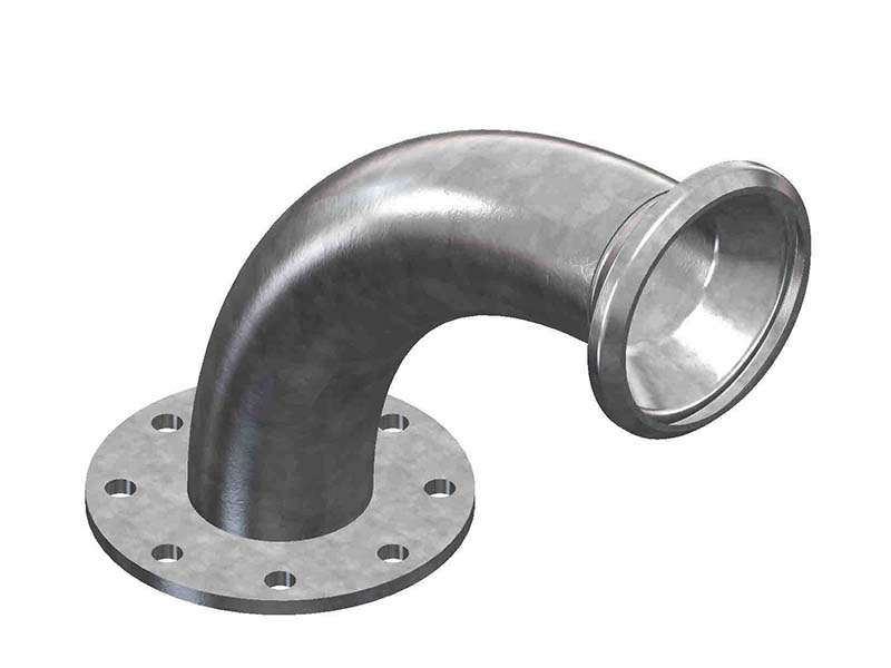 Kielich z przyłączem kołnierzowym do systemu złączy BAUER typ B45 wykonany ze stali ocynkowanej, z gumową uszczelką z mieszanki NR/SBR (na życzenie EPDM).