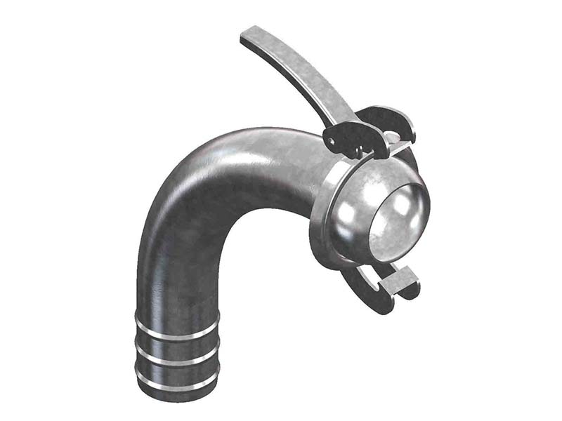 Element z króćcem, służy do montażu wewnątrz węża, przy użyciu oddzielnie zamawianych opasek lub obejm. Wraz z kulistym wtykiem, oraz osobnym kołnierzem z zaczepami, tworzy męską część złącza. Króciec z kulą oraz kołnierz nie są ze sobą połączone na stałe. Kołnierz nakładany od strony króćca wyposażony jest w dwa zaczepy, oraz dźwignie służącą zaciągnięciu w celu zamknięcia złącza. Element wygięty jest w kształt kolana pod kątem prostym lub 45°, co zwiększa jego możliwości przy instalacji na urządzeniach lub w systemach przesyłowych. Jest kompatybilny z oryginalnymi złączami produkcji BAUER.