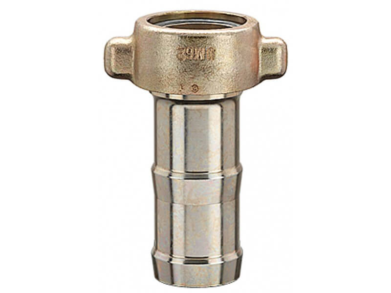 Złącza z króćcem do węża ze stali ocynkowanej, z nakrętką z gwintem wewnętrznym z żeliwa ciągliwego, odlewanego, z uszczelką czołową wykonaną z NBR.