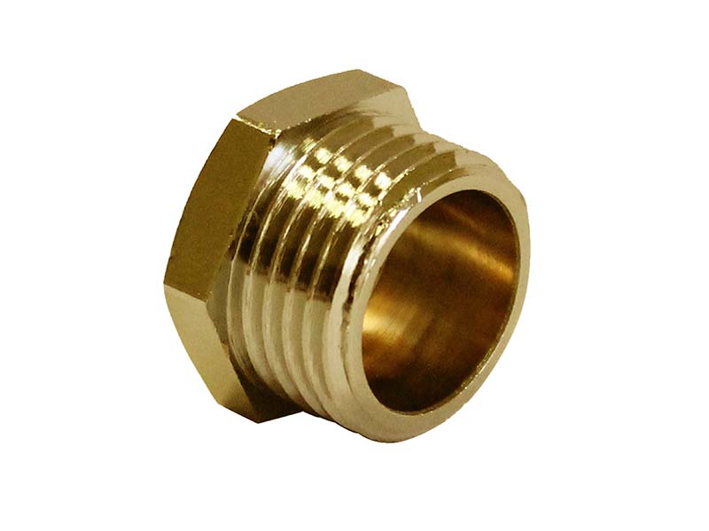 Korek z gwintem zewnętrznym wykonany z mosiądzu.
