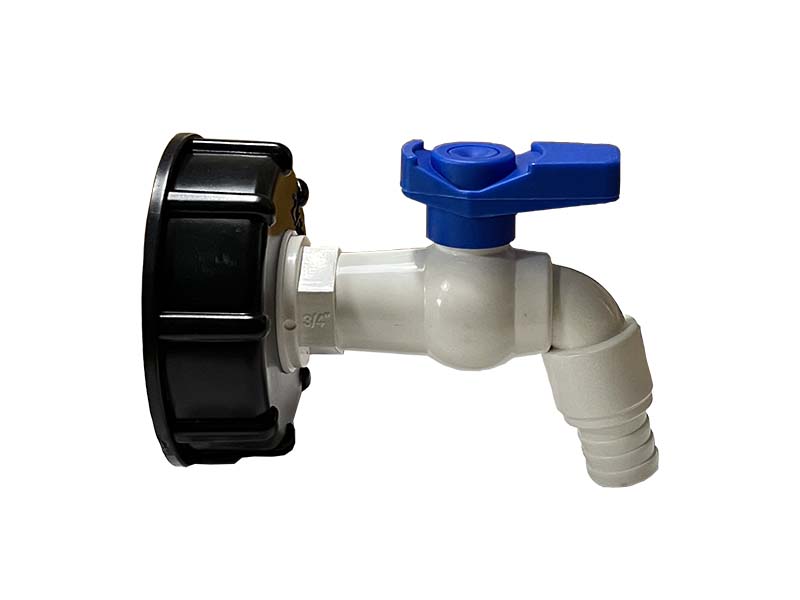 Kran IBC z króćcem do węża z polipropylenu (PP), uszczelnienie z polietylenu (PE).