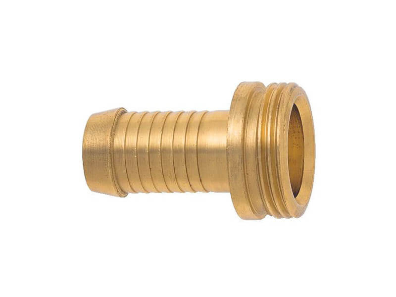 Króciec z pogrubionym czołem, z gwintem zewnętrznym, do trzyczęściowych złączy GEKA 1 z 3 wykonany z mosiądzu.