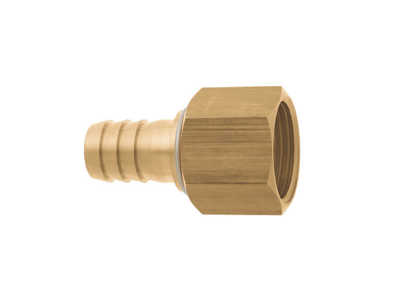 Króciec do węża z gwintem wewnętrznym wykonany z mosiądzu, z uszczelnieniem z NBR.