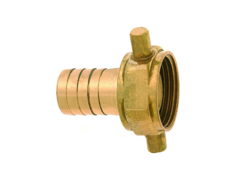 Króciec z nakrętką z gwintem wewnętrznym, do trzyczęściowych złączy GEKA 2 z 3 wykonany z mosiądzu, z uszczelnieniem z NBR.