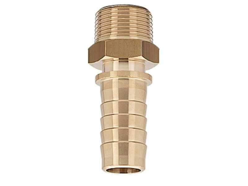 Króciec do węża z gwintem zewnętrznym do pary nasyconej wykonany z mosiądzu.