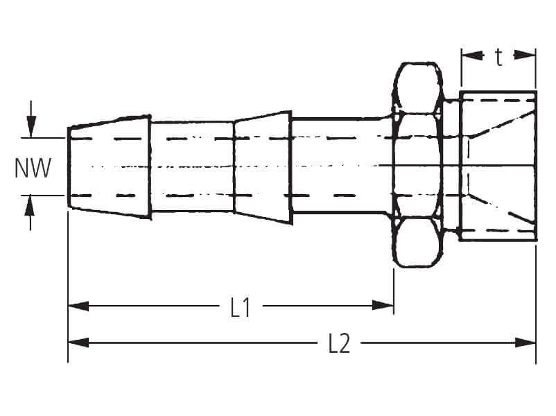 | gwint zewn. | Ø wewn. węża [mm] | NW [mm] | SW | t [mm] | L1 [mm] | L2 [mm] | nr id | nr artykułu |