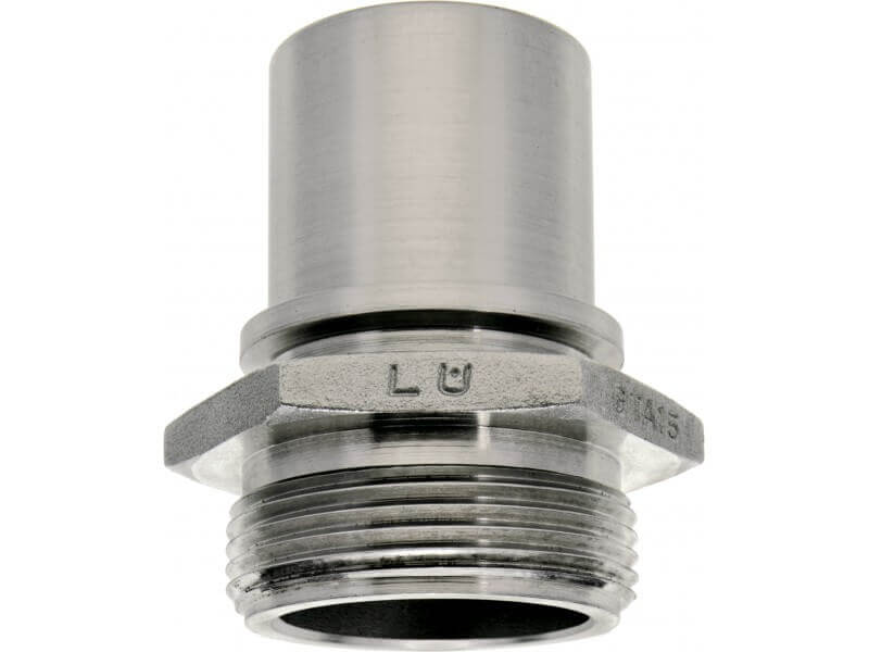 Króciec do węży pod obejmę skorupową z gwintem wewnętrznym wykonany ze stali szlachetnej AISI 316.