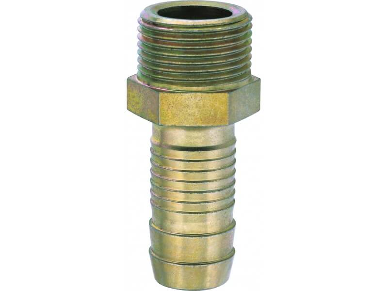 Złącza skręcane z króćcem do węża i gwintem zewnętrznym ze stali ocynkowanej.