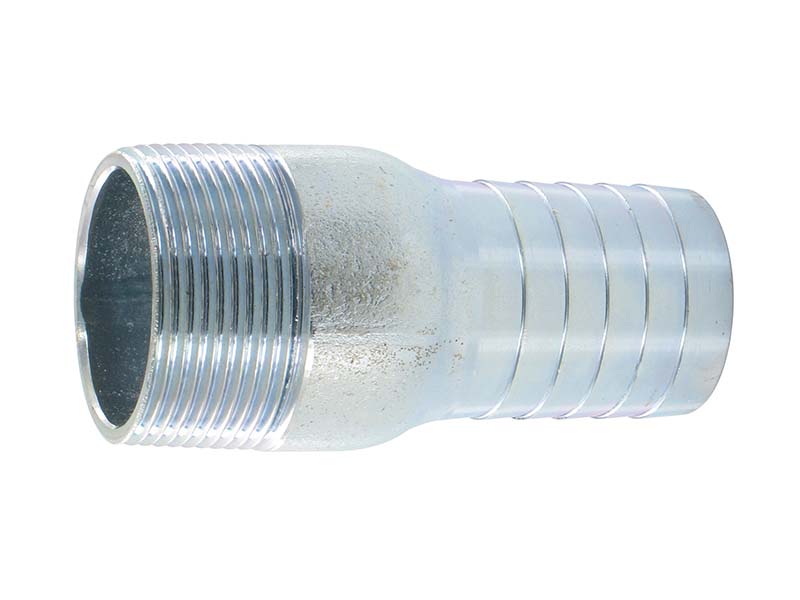 Króciec do węży z gwintem zewnętrznym (BSPT/R) wykonany ze stali ocynkowanej.