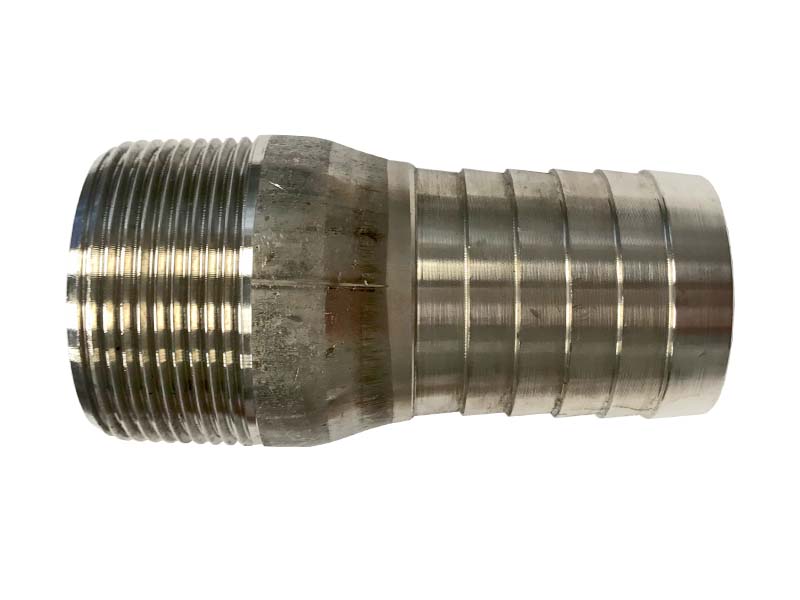 Króciec do węży z gwintem zewnętrznym (BSPT/R) wykonany ze stali szlachetnej.