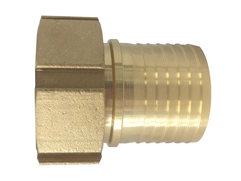 Króciec do węży pod obejmę skorupową z gwintem wewnętrznym ISO 228 wykonany z mosiądzu, z uszczelką płaską z NBR.