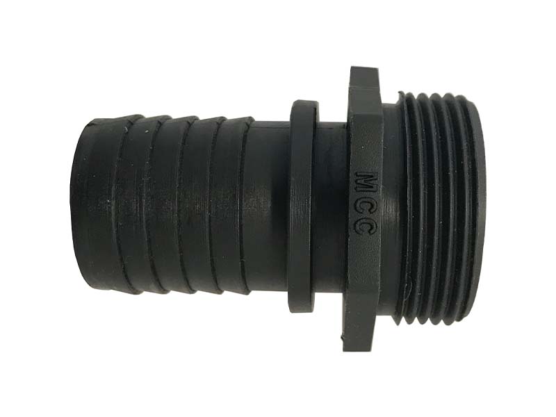 Króciec do węży pod obejmę skorupową z gwintem zewnętrznym ISO 228 wykonany z polipropylenu (PP).