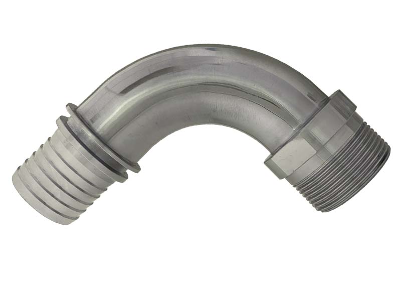 Króciec kątowy 90° do węży pod obejmę skorupową z gwintem zewnętrznym ISO 228 wykonany ze stali szlachetnej.
