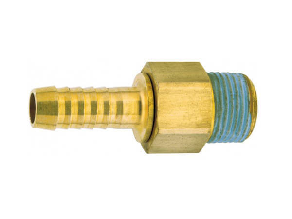 Króciec do węża z powlekanym gwintem zewnętrznym, wykonany z mosiądzu gładkiego MS 58.