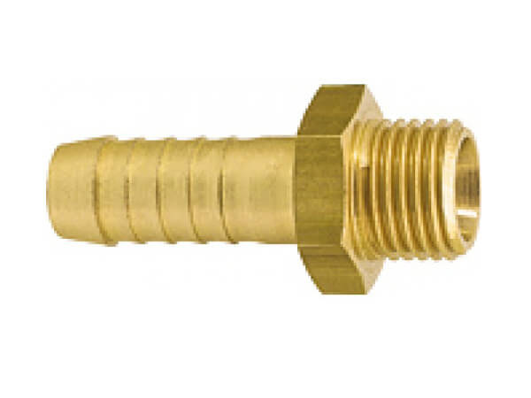 Króciec do węża z gwintem zewnętrznym, wykonany z mosiądzu gładkiego MS 58.