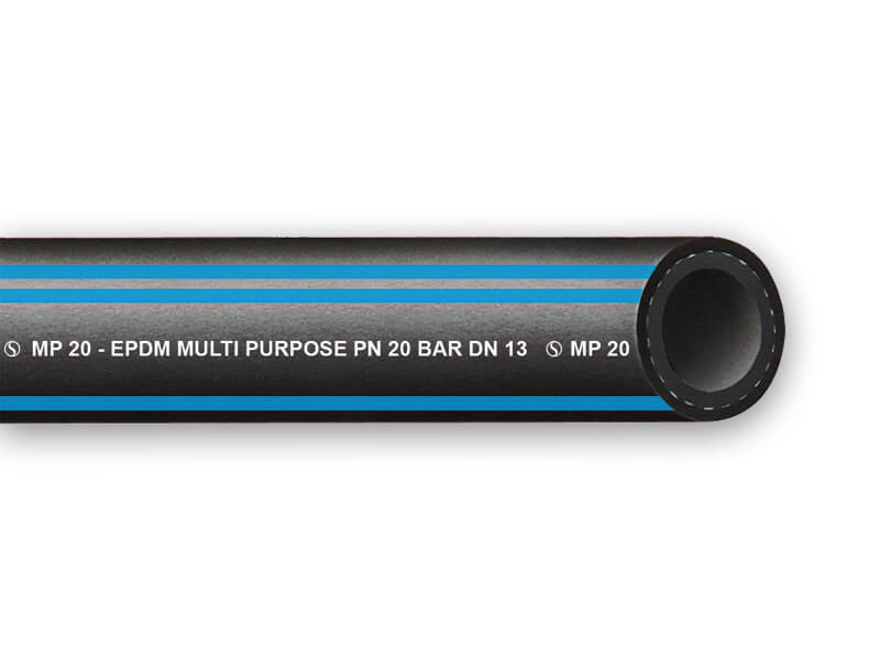 Wąż MP 20 wykonany jest z gumy EPDM, z oplotem z siatki tekstylnej.