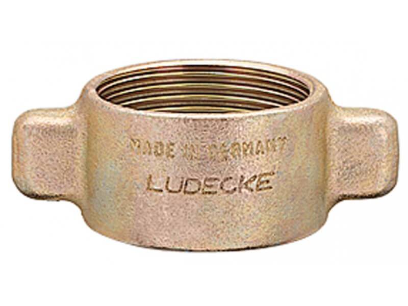 Nakrętka do złącza typ FL LUDECKE przeznaczonych do zastosowania przy zasilaniu sprężonym powietrzem lub wodą specjalistycznych narzędzi. Przykładami obsługiwanych urządzeń są m. in. młoty pneumatyczne, wiertarki i wiertnice, czy też zasilające te narzędzia sprężarki. Złącza świetnie sprawdzają się w budownictwie drogowym, budownictwie ogólnym, zwłaszcza przy rozbiórkach, w górnictwie czy w wiertnictwie. Ich zaletą, jest użyty materiał, który dzięki oryginalnej i opatentowanej technologii wytwarzania, charakteryzuje się większą wytrzymałością na rozciąganie, zginanie i naprężenia produktu, w stosunku do złączy wytwarzanych na Dalekim Wschodzie. Dzięki temu, złącza te charakteryzują się dużo większą żywotnością, co przekłada się na dużo mniejsze ryzyko uszkodzenia drogich urządzeń specjalistycznych, czy też narażenie zdrowia operatorów. Żółta pasywacja chromem, pozbawiona jest szkodliwego dla środowiska i zdrowia chromu sześciowartościowego.