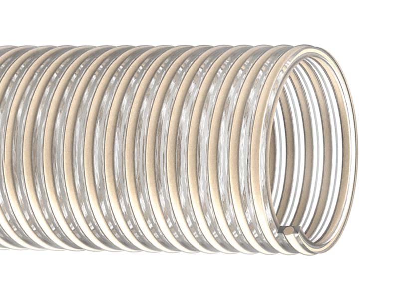 Zastosowania:NETTUNO to przezroczysty wąż wykonany z PVC-P, wzmocniony spiralą z odpornego na uderzenia sztywnego PVC w kolorze kości słoniowej. Wnętrze węża jest gładkie, co zapewnia optymalny przepływ transportowanych mediów, a jego konstrukcja sprawia, że jest lekki i wyjątkowo elastyczny. Wąż cechuje się wysoką odpornością na obciążenia, warunki atmosferyczne oraz szeroki zakres substancji chemicznych. Zarówno jego ściana, jak i spirala są wykonane z materiałów dopuszczonych do kontaktu z żywnością, co czyni go wężem w pełni spożywczym.