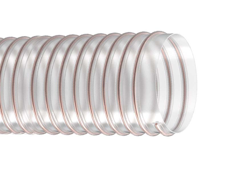 | Parametry użytkowe | Falisty, gładki wewnątrz, odporny na ścieranie, oleje mineralne, starzenie, warunki atmosferyczne, promieniowanie UV i ozon. Półprzeźroczysty, elastyczny, ścianki trwale antystatyczne. Przewodzący po uziemieniu spirali. Podwyższona odporność na hydrolizę (w stosunku do innych PU estrowych). Ścieralność 20 mm3 |