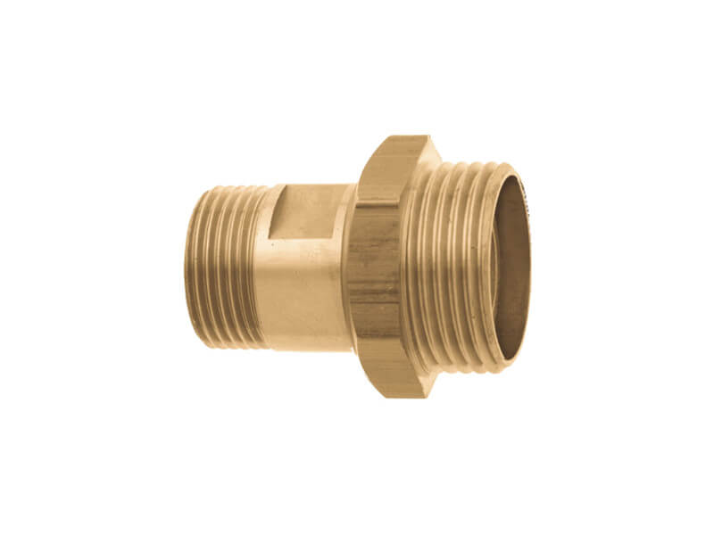 Nypel obrotowy z gwintami zewnętrznymi wykonany z mosiądzu, z uszczelnieniem z NBR.