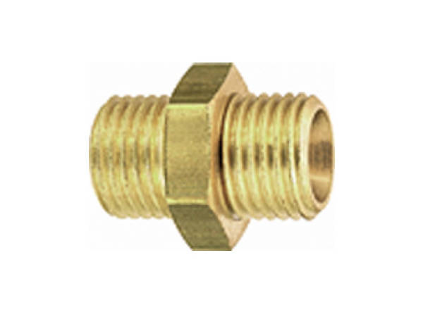 Nypel / redukcja ze stożkiem wewnątrz z gwintami zewnętrznymi, wykonany z mosiądzu gładkiego MS 58, z uszczelnieniem z PVC.