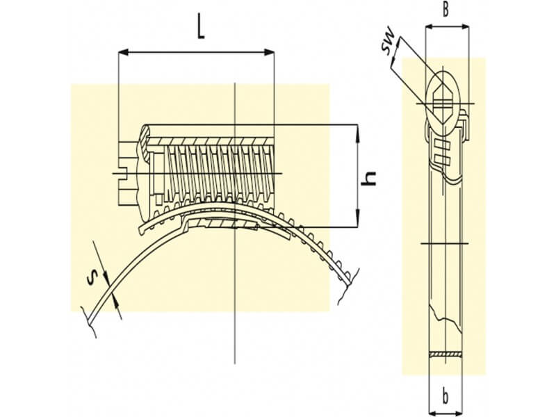 | zakres ściskania [mm] | szerokość taśmy [mm] | moment obrotowy [Nm] | grubość taśmy | B [mm] | h | L | waga [g] | nr artykułu |