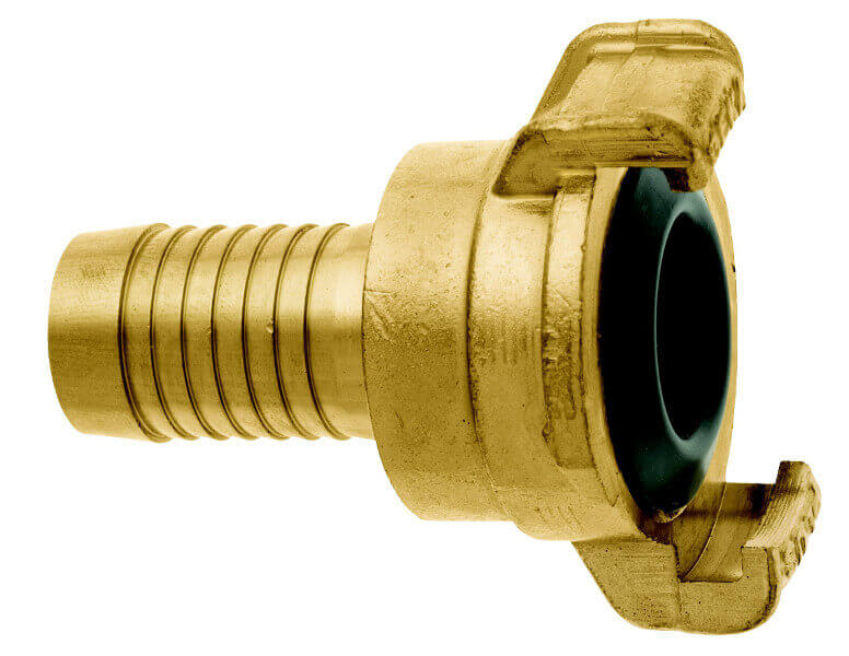 Oryginalne obrotowe złącze kłowe GEKA® plus 360 z króćcem do węża wykonane z mosiądzu i uszczelnieniem z NBR.