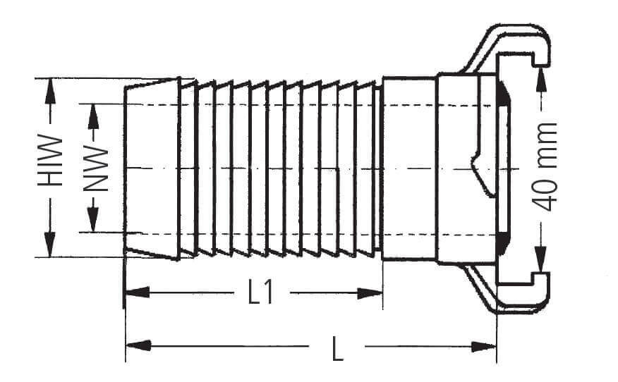 | Ø wewn. węża | NW [mm] | L | L1 [mm] | nr id | nr artykułu |