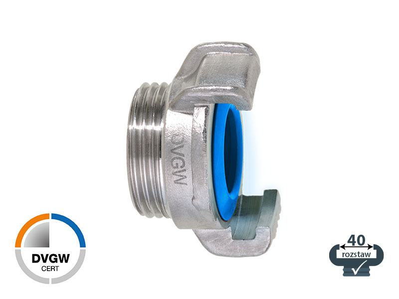 DVGW – To "Niemieckie Stowarzyszenie Techniczno-Naukowe Gazu i Wody”, które odpowiada że regulacje dotyczące wszystkiego co związane jest z zaopatrzeniem i przesyłem gazu i wody. Złącza spełniają wymogi zawarte w DVGW W270, które dotyczą materiałów, które mają być stosowane w kontakcie z wodą pitną. Norma ta określa sposób sprawdzania, czy, i w jakim stopniu dochodzi do rozwoju drobnoustrojów na materiałach w kontakcie z wodą pitną, oraz migracji materiału do wody pitnej podczas testu. Przeprowadza się go według ściśle określonych parametrów na jego próbkach. Tożsamą normą europejską jest EN 16421, która przewiduje dokładnie takie same warunki dopuszczenia materiałów do transportu wody pitnej dla ludzi. Złącze posiada certyfikat spełnienia wymagań DVGW VP550 (dla końcówek przewodów do czasowego transportu wody pitnej) o numerze DW-0310BT0218.