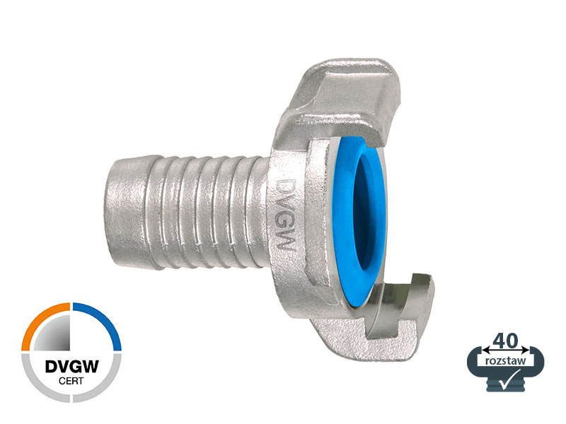 DVGW – To "Niemieckie Stowarzyszenie Techniczno-Naukowe Gazu i Wody”, które odpowiada że regulacje dotyczące wszystkiego co związane jest z zaopatrzeniem i przesyłem gazu i wody. Złącza spełniają wymogi zawarte w DVGW W270, które dotyczą materiałów, które mają być stosowane w kontakcie z wodą pitną. Norma ta określa sposób sprawdzania, czy, i w jakim stopniu dochodzi do rozwoju drobnoustrojów na materiałach w kontakcie z wodą pitną, oraz migracji materiału do wody pitnej podczas testu. Przeprowadza się go według ściśle określonych parametrów na jego próbkach. Tożsamą normą europejską jest EN 16421, która przewiduje dokładnie takie same warunki dopuszczenia materiałów do transportu wody pitnej dla ludzi. Złącze posiada certyfikat spełnienia wymagań DVGW VP550 (dla końcówek przewodów do czasowego transportu wody pitnej) o numerze DW-0310BT0218.
