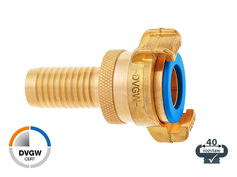 DVGW – To "Niemieckie Stowarzyszenie Techniczno-Naukowe Gazu i Wody”, które odpowiada że regulacje dotyczące wszystkiego co związane jest z zaopatrzeniem i przesyłem gazu i wody. Złącza spełniają wymogi zawarte w DVGW W270, które dotyczą materiałów, które mają być stosowane w kontakcie z wodą pitną. Norma ta określa sposób sprawdzania, czy, i w jakim stopniu dochodzi do rozwoju drobnoustrojów na materiałach w kontakcie z wodą pitną, oraz migracji materiału do wody pitnej podczas testu. Przeprowadza się go według ściśle określonych parametrów na jego próbkach. Tożsamą normą europejską jest EN 16421, która przewiduje dokładnie takie same warunki dopuszczenia materiałów do transportu wody pitnej dla ludzi. Złącze posiada certyfikat spełnienia wymagań DVGW VP550 (dla końcówek przewodów do czasowego transportu wody pitnej) o numerze DW-0310BT0218.