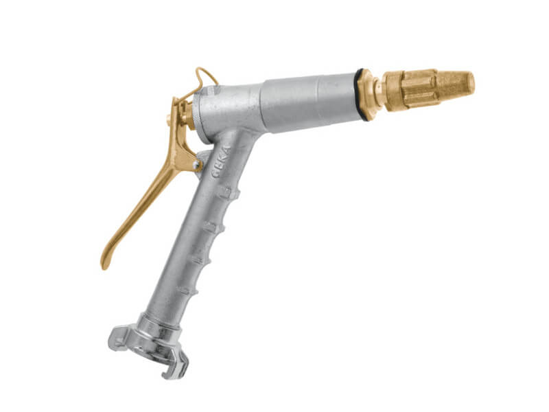 Oryginalny pistolet do zraszania GEKA® Plus Professional, wykonany z aluminium z elementami z mosiądzu i uszczelką z NBR.