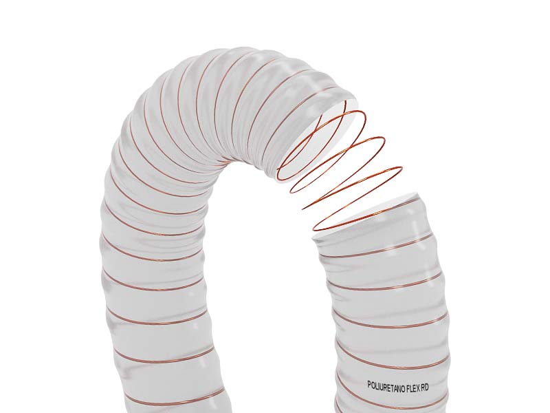 Zastosowania:Wąż POLIURETANO FLEX RD 0.7 EST przeznaczony jest do odsysania lekko ścierających pyłów, oparów, dymu czy kurzu, oraz powietrza z drobinami żywności, jak mąka, skrobia, etc.. Wąż ma cienkie ścianki i jest falisty, dla ułatwienia transportu sprężyna jest składana i należy go rozciągnąć przed użyciem. Wykonanie z poliuretanu, zapewnia odporność na ścieranie, dzięki czemu wydłużona jest żywotność węża przy pracy z lekko ścierającymi powierzchnie materiałami. Spirala, powoduje, że wąż może pracować z podciśnieniem, a jednocześnie odprowadza gromadzące się podczas pracy ładunki elektryczne, dzięki temu może pracować w strefach zagrożonych wybuchem ATEX. Wąż jest lekki, dzięki czemu, nawet przy dużych średnicach łatwiej jest nim operować, niż zbrojonymi wężami trudnościeralnymi. Może być wykorzystany w przetwórstwie spożywczym, przemyśle, a zastosowanie bardzo odpornego na oleje i wiele substancji chemicznych materiału pozwala na odsysanie wielu oparów i pyłów stosowanych w przetwórstwie spożywczym, np. olejków zapachowych.