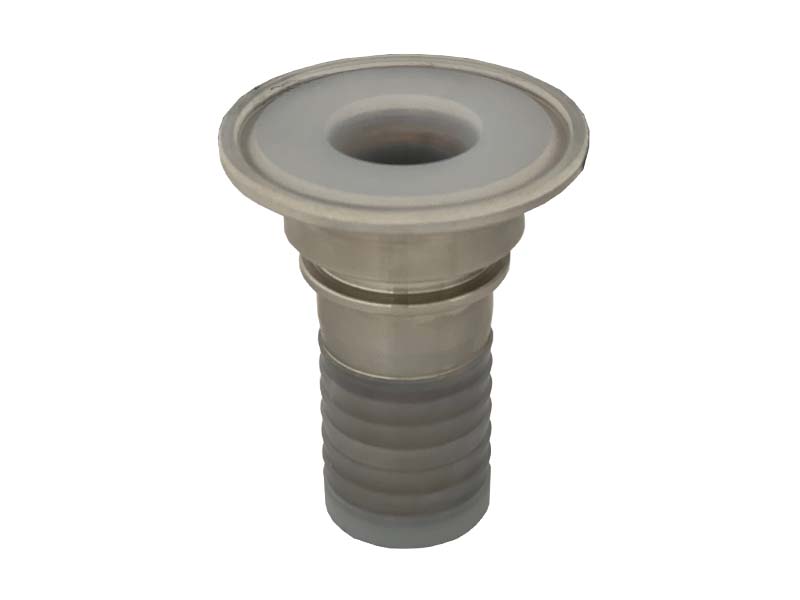 Złącze Tri Clamp zgpdne z DIN 32676, z króćcem do węża, wykonane ze stali szlachetnej powlekanej Teflonem (PFA)