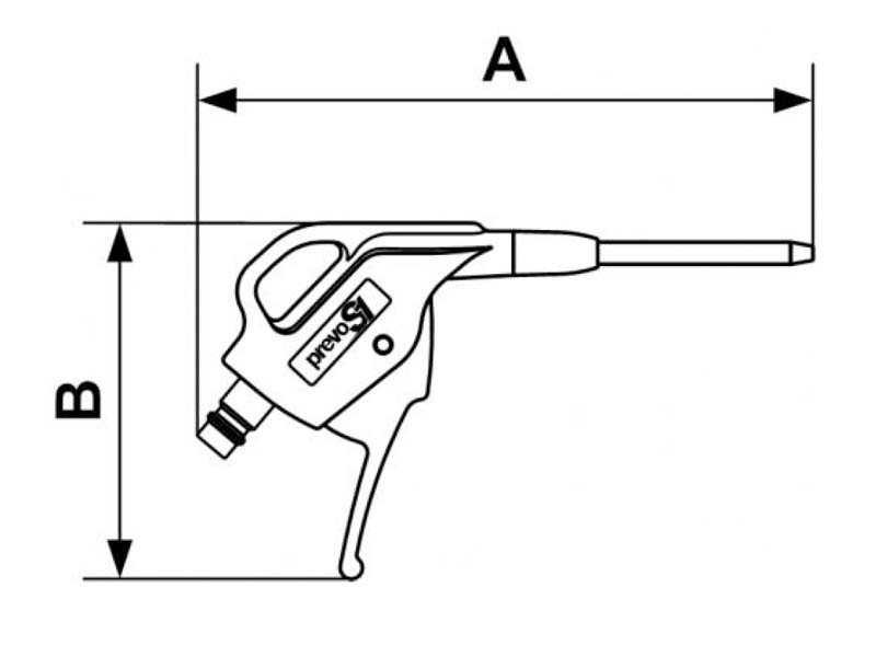 Pistolet pneumatyczny do przedmuchiwania przeznaczony do pracy ze sprężonym powietrzem. Wykazuje się dużą jakością wykonania gwarantowanym przez francuskiego producenta PREVOST, zapewniającą urządzeniu długotrwałą i bezawaryjną żywotność. Pistolet odporny na zarysowania, wykonany z izolującego i antypoślizgowego materiału kompozytowego (tworzywo sztuczne). Ergonomiczna rączka, z możliwością odwieszania. Całkowicie szczelna obudowa zapewniająca odporność na wniknięcie do mechanizmu ciał obcych.