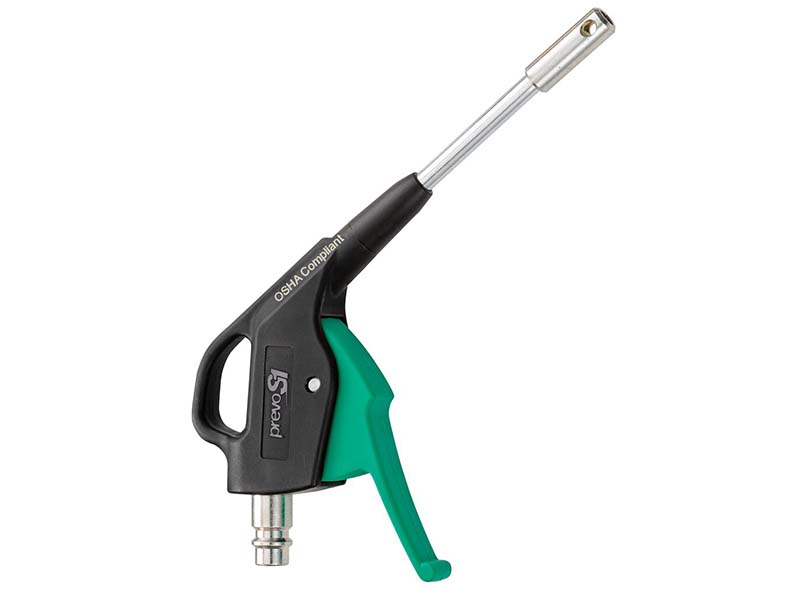 Pistolet pneumatyczny do przedmuchiwania przeznaczony do pracy ze sprężonym powietrzem. Wykazuje się dużą jakością wykonania gwarantowanym przez francuskiego producenta PREVOST, zapewniającą urządzeniu długotrwałą i bezawaryjną żywotność. Pistolet odporny na zarysowania, wykonany z izolującego i antypoślizgowego materiału kompozytowego (tworzywo sztuczne). Ergonomiczna rączka, z możliwością odwieszania. Całkowicie szczelna obudowa zapewniająca odporność na wniknięcie do mechanizmu ciał obcych.