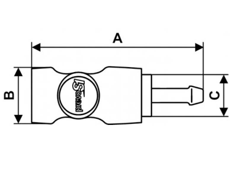 | Ø wewn. węża [mm] | przelot (DN) | całkowita długość (A) [mm] | całkowita szerokość (B) [mm] | Ø zewn. tulei (C) [mm] | min. ciśnienie pracy [bar] | max. ciśnienie pracy [bar] | nr artykułu |