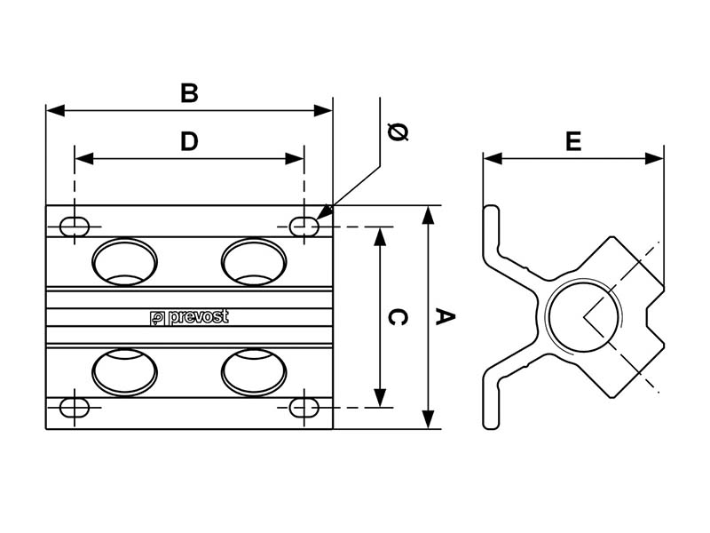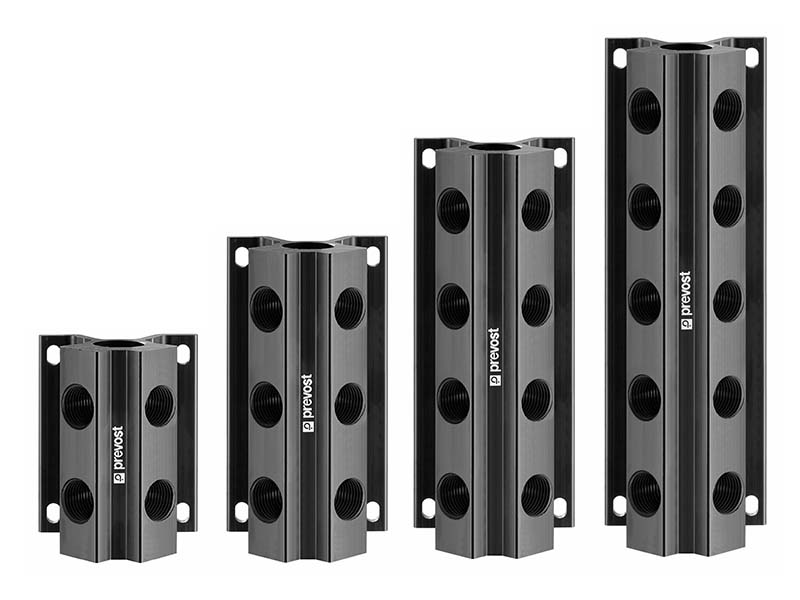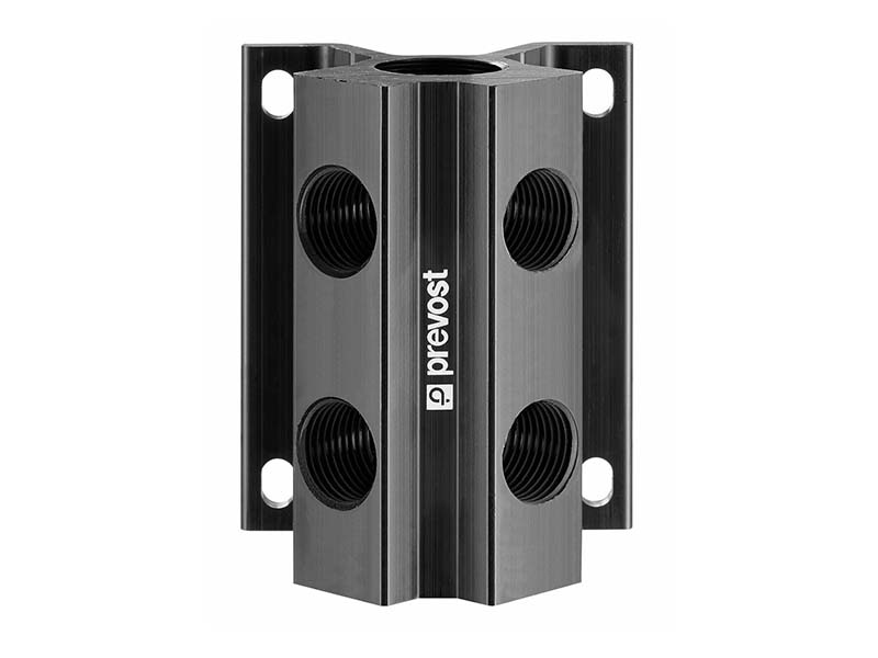 Uchwyty przeznaczone sa do zastosowania jako punkty dostępowe przy budowie instalacji pneumatycznych. Zaprojektowane z myślą o współpracy z szybkozłączkami PREVOST, z serii PrevoS1 z przyłączem z gwintem zewnętrznym BSPP lub BSPT. Szybkozłączki z tej serii przeznaczone są przede wszystkim do transportu sprężonego powietrza w systemach pneumatycznych. Uchwyt posiada wejście od góry z gwintem wewnętrzym BSPP i parzystą ilość portów na szybkozłączki na wyjściu również z gwintem wewnętrznym BSPP. Dedykowane do tego roziwązania szybkozłączki posiadają z jednej strony gniazdo, a z drugiej znormalizowany gwint zewnętrzny BSPP (ISO 228) lub BSPT (EN 10226). Szybkozłączki z tej serii, niezależnie od rozmiaru i profilu wtyku są jednocześnie zaworami jednostronnie odcinającymi, co zapobiega wydostawaniu się medium w przypadku rozpięcia przewodu i nie wymaga dodatkowego zaworu zamykającego instalacje w celu jej rozpięcia.